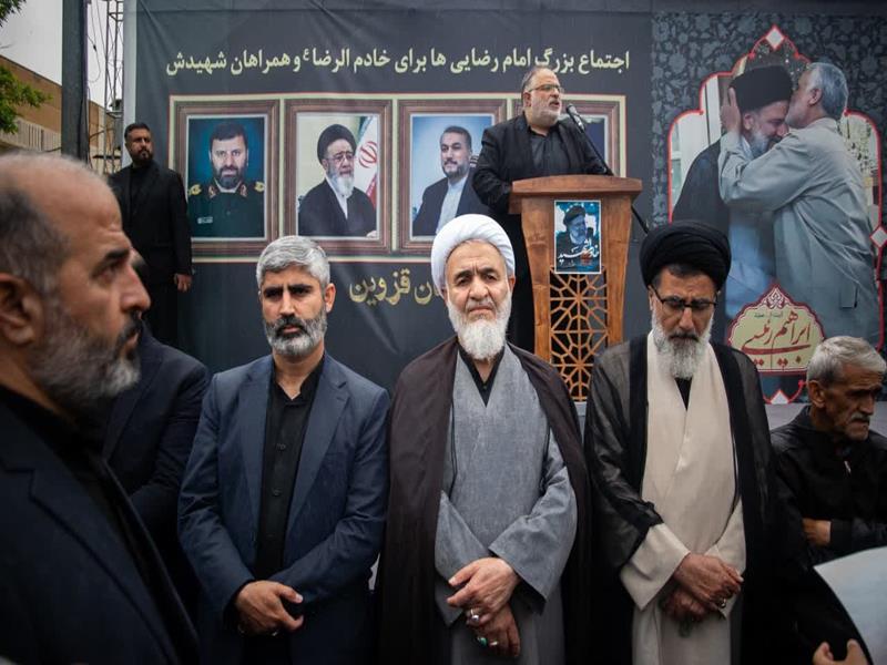 جتماع مردم سوگوار قزوین در پی شهادت خادم الرضا(ع) رئیس جمهور مردمی آیت الله رئیسی و همراهان شهیدش در میدان آزادی