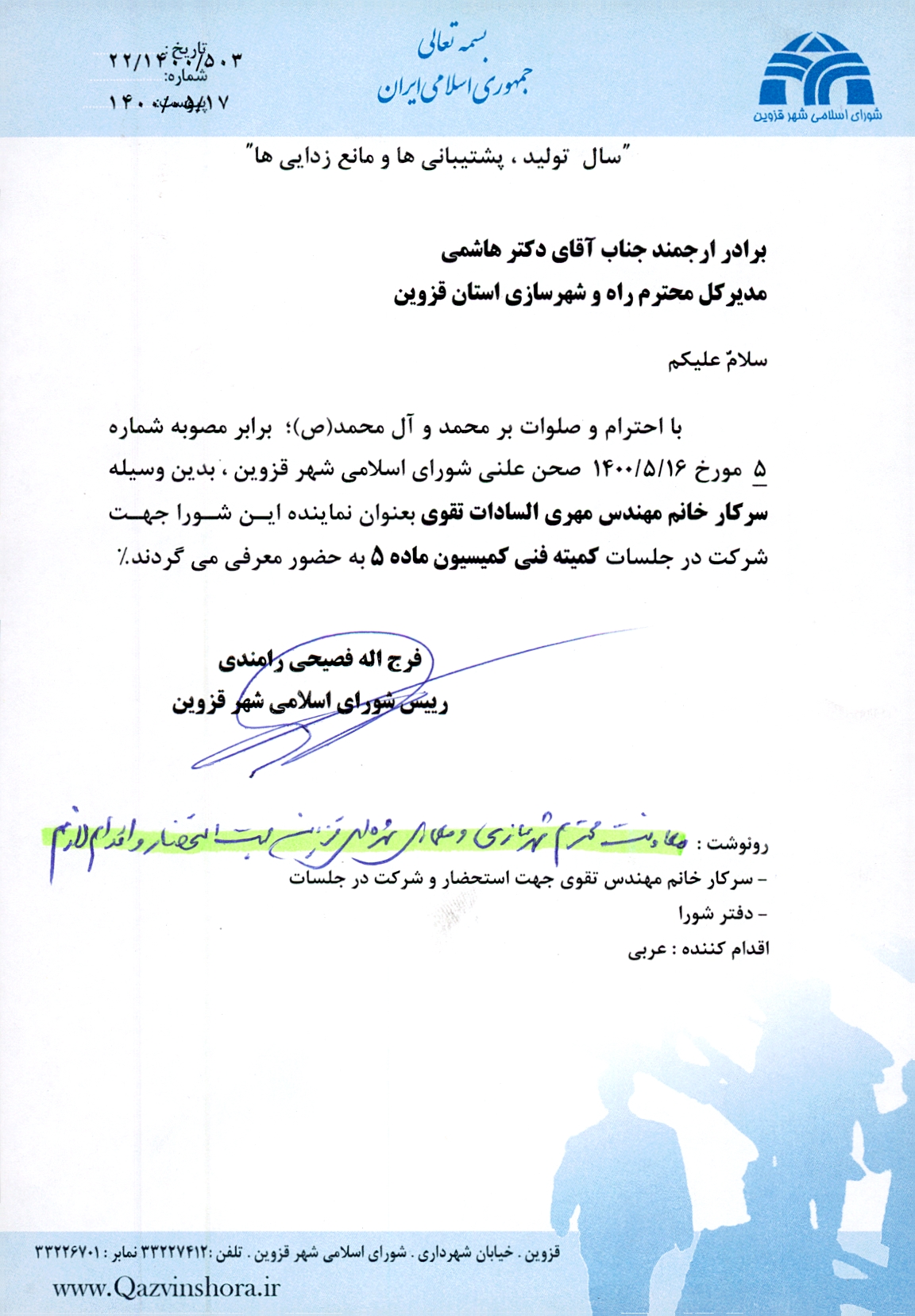 | معرفی سرکار خانم تقوی در کمیسون ماده 5مصوبه 5 | ||